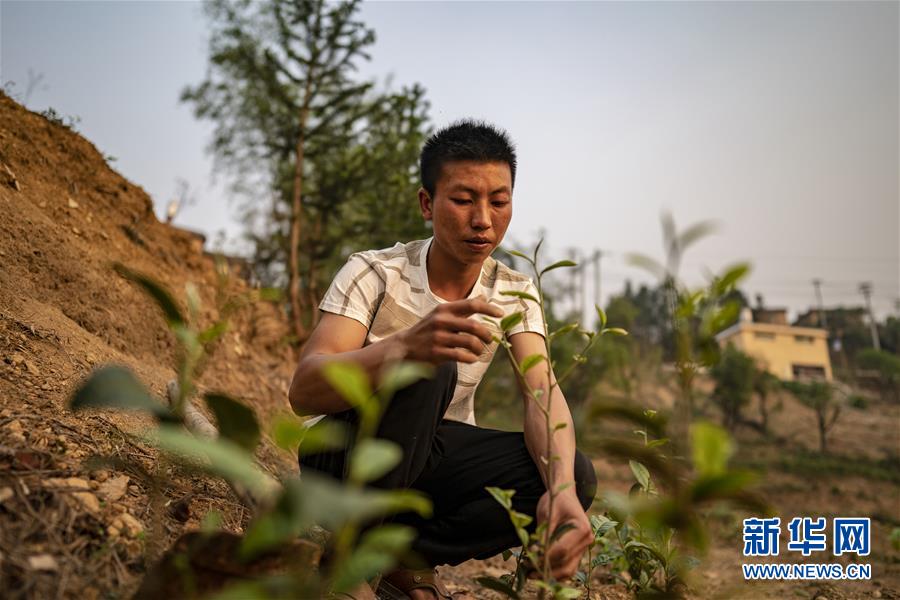 村民王九才在茶葉地里勞動(3月28日攝)。新華社記者江文耀攝