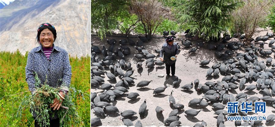 拼版照片:左圖為西藏昌都市芒康縣納西民族鄉(xiāng)加達村村民白姆;右圖為白姆在芒康縣納西民族鄉(xiāng)三江農民專業(yè)合作社喂雞。白姆在三江農民專業(yè)合作社打工,主要負責喂雞和喂牛,每月有3000元的收入(5月4日攝)。新華社記者詹彥攝