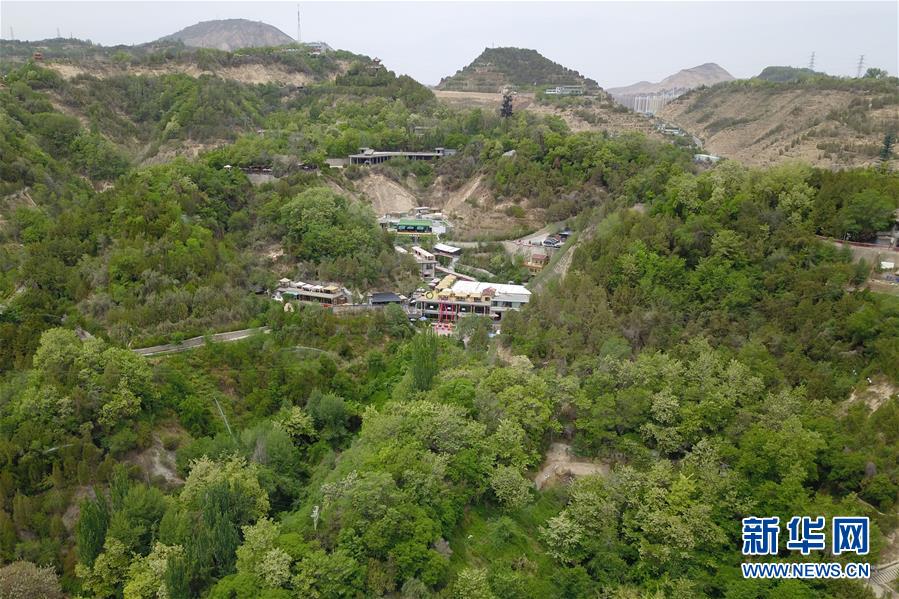 這是5月18日在蘭州市城關(guān)區(qū)拍攝的皋蘭山下五泉山公園初夏景象(無人機(jī)照片)。