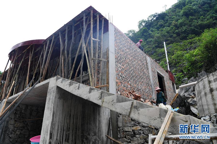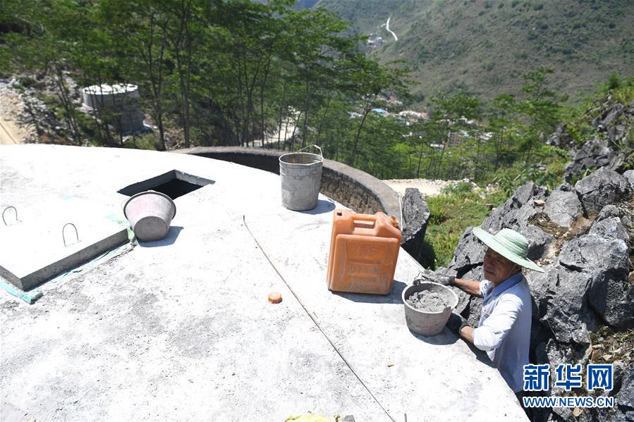 大化瑤族自治縣雅龍鄉(xiāng)勝利村群眾在建設(shè)水柜(2019年6月6日攝)。新華社記者張愛林攝