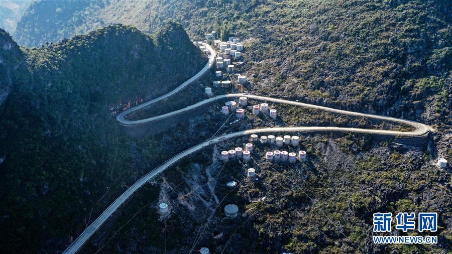這是大化瑤族自治縣江南鄉(xiāng)上和村群眾修建的水柜(2019年12月12日攝,無人機照片)。新華社記者張愛林?jǐn)z