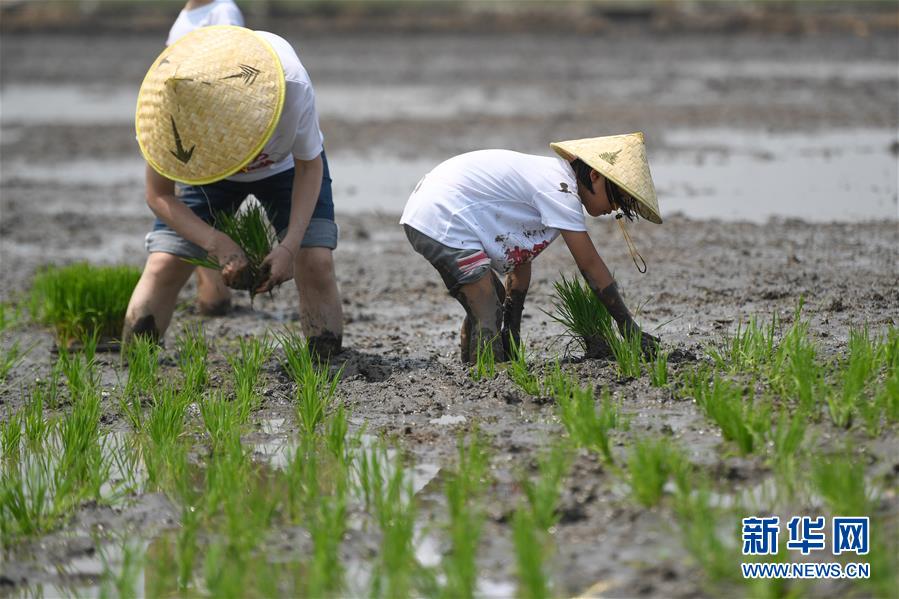 5月24日,一名小朋友在稻田里插秧。當(dāng)日,十余名小朋友在家長(zhǎng)的帶領(lǐng)下來到浙江省湖州市吳興區(qū)八里店鎮(zhèn)尹家圩糧油植保農(nóng)機(jī)專業(yè)合作社的稻田中,參加親子插秧、稻田捉魚等農(nóng)事體驗(yàn)活動(dòng)。新華社記者黃宗治攝