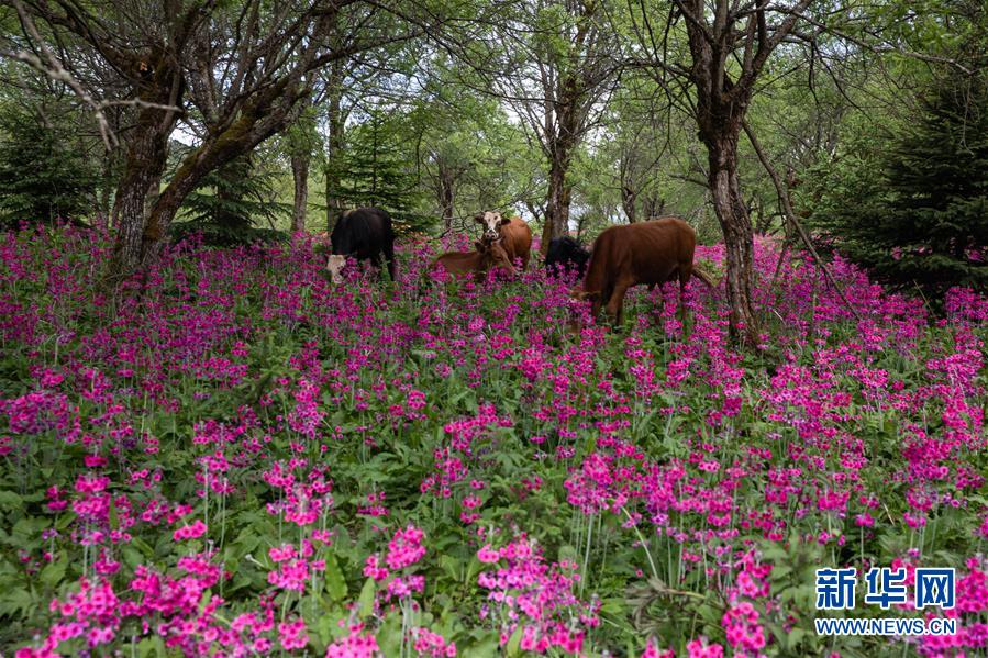 四川省漢源縣桌子山上的報春花遍地綻放(5月24日攝)。新華社記者江宏景攝