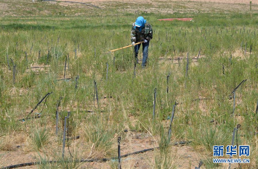 5月28日,工人在巴丹吉林鎮(zhèn)生態(tài)修復(fù)項目南部河道附近進(jìn)行補(bǔ)植作業(yè)。2017年以來,內(nèi)蒙古阿拉善右旗在巴丹吉林鎮(zhèn)開展生態(tài)修復(fù)項目,種植適合在當(dāng)?shù)厣L的馬蓮、紅柳等植物,修復(fù)生態(tài)的同時也起到美化作用。巴丹吉林鎮(zhèn)是巴丹吉林沙漠旅游景區(qū)的游客集散地,這里常年干旱少雨,水資源匱乏。新華社記者徐欽攝