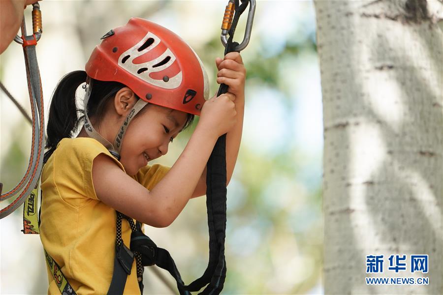 5月31日,小朋友在北京朝陽公園體驗(yàn)戶外運(yùn)動(dòng)。