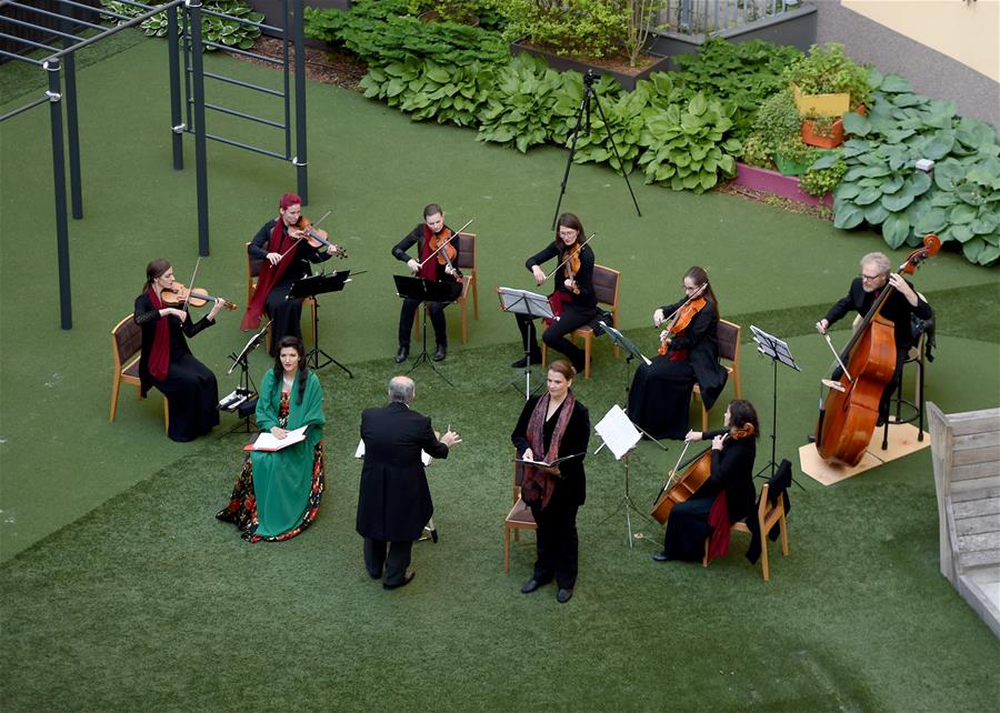 5月30日,在奧地利維也納“時(shí)代精神”酒店的庭院內(nèi),歌劇樂團(tuán)為觀眾演出。當(dāng)日,奧地利首都維也納的一家名為“時(shí)代精神”的酒店為迎接“解封”后恢復(fù)營(yíng)業(yè),在其庭院內(nèi)舉辦“窗口音樂會(huì)”。按照奧政府此前公布的“解封”時(shí)間表,從29日起,賓館酒店以及健身房、游泳池和游樂場(chǎng)等休閑娛樂場(chǎng)所有條件恢復(fù)運(yùn)營(yíng)。新華社記者郭晨攝