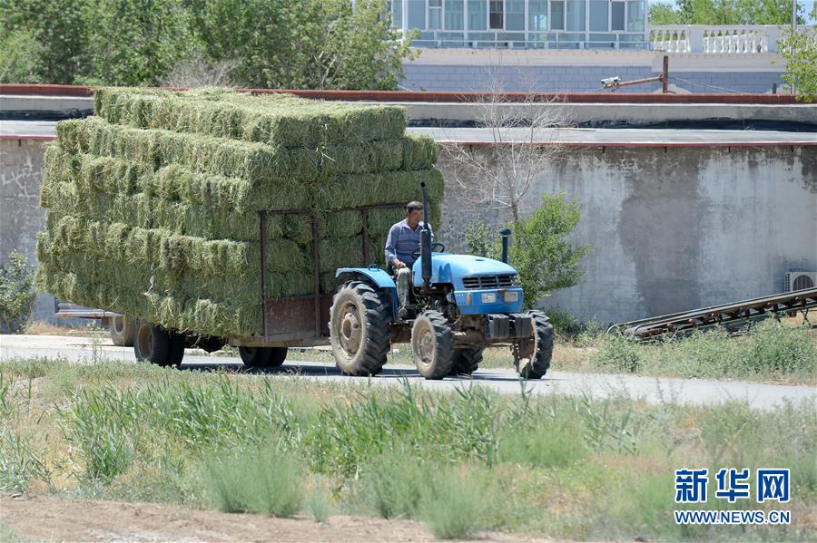 6月2日,在新疆野馬繁殖研究中心,工作人員在運送草料。新華社記者丁磊攝。