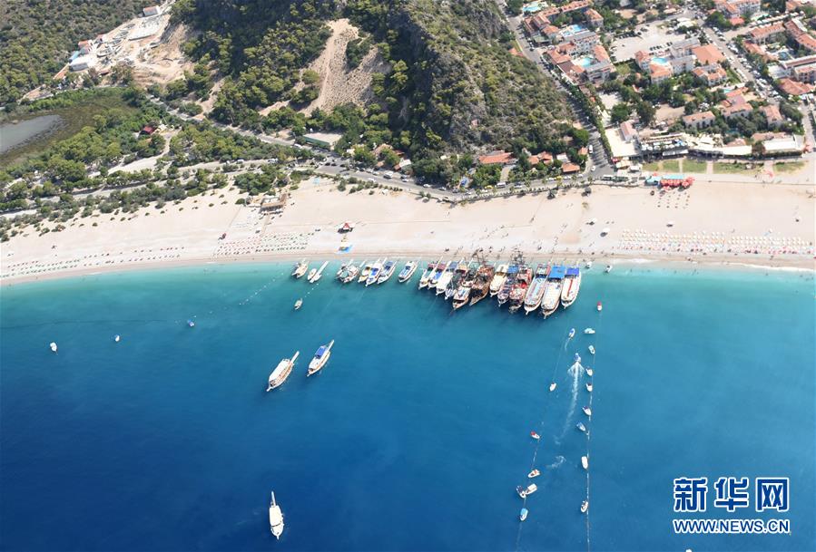 這是2018年7月23日在土耳其西南部的費(fèi)特希耶拍攝的海灘和游船。6月5日是第47個(gè)聯(lián)合國世界環(huán)境日,今年的主題為“關(guān)愛自然刻不容緩”。新華社記者賀燦鈴攝。