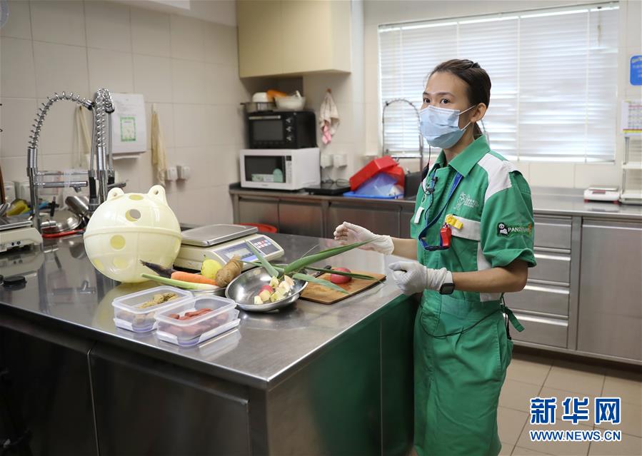 香港海洋公園陸生動(dòng)物部監(jiān)督殷漫萍在熊貓廚房介紹熊貓食物的制作(5月11日攝)。新華社記者吳曉初攝