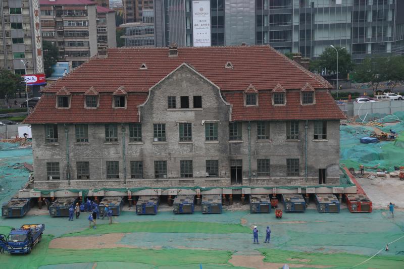 山東濟南2600噸百年修女樓坐“車”準備平移