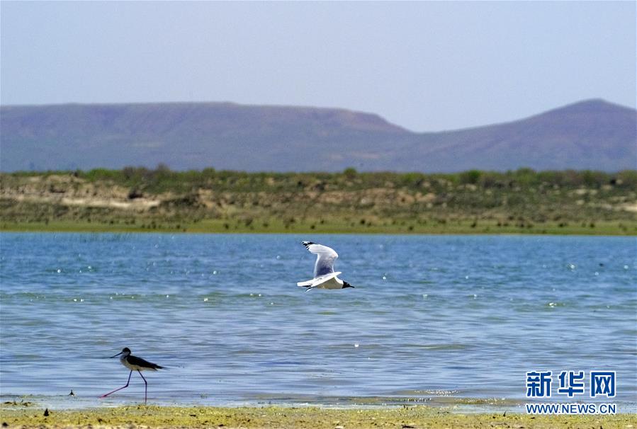 這是6月9日在泊江海子拍攝的黑翅長腳鷸(左)和遺鷗。近年來,在當(dāng)?shù)卣亩喾N措施治理下,曾經(jīng)水面萎縮的內(nèi)蒙古自治區(qū)鄂爾多斯市境內(nèi)的泊江海子水量逐漸恢復(fù)。近期,包括遺鷗在內(nèi)的40多種鳥類來此棲息,泊江海子重新成為鳥類的樂園。新華社記者賈立君攝