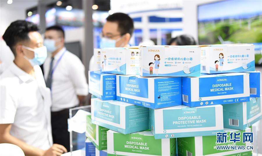 6月10日拍攝的展會(huì)上的口罩生產(chǎn)商展位。當(dāng)日,廣州國(guó)際防疫物資展覽會(huì)在保利世貿(mào)博覽館舉行。本次展會(huì)面積共計(jì)3.6萬(wàn)平方米,設(shè)有防疫產(chǎn)品、設(shè)備、綜合服務(wù)、原輔料等4個(gè)展區(qū),參展企業(yè)約600家。新華社記者鄧華攝