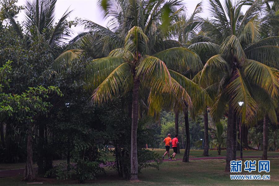 市民在??谌f綠園夜跑(5月28日拍攝)。近年來,夜跑成為越來越多都市人熱衷的健身方式之一。在海南???,每當夜幕降臨,“夜跑族”來到??谌f綠園、世紀公園等夜跑場所跑步,用一身酣暢淋漓的汗水擺脫白天工作中的壓力,享受跑步帶來的歡愉。新華社記者 蒲曉旭 攝