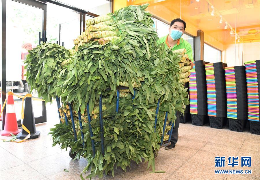 6月14日,在北京市海淀區(qū)的超市發(fā)雙榆樹店,工作人員在搬運(yùn)蔬菜。 新華社記者 任超 攝