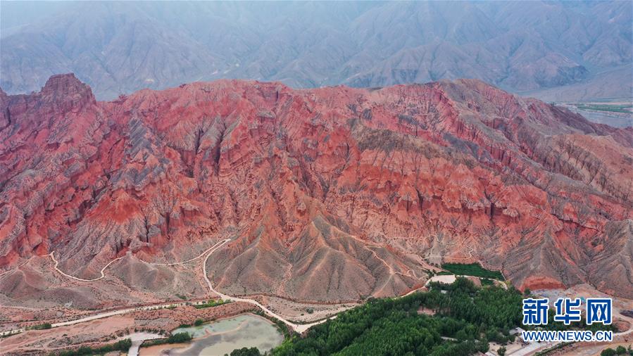 這是6月16日拍攝的位于貴德縣尕讓鄉(xiāng)松巴村附近的丹霞地貌(無人機照片)。夏日時節(jié),位于青海省海南藏族自治州的貴德縣迎來連日降雨,多彩的丹霞地貌在雨后色澤愈發(fā)鮮艷,在云霧的籠罩下形成一幅幅獨特畫卷。新華社記者 吳剛 攝