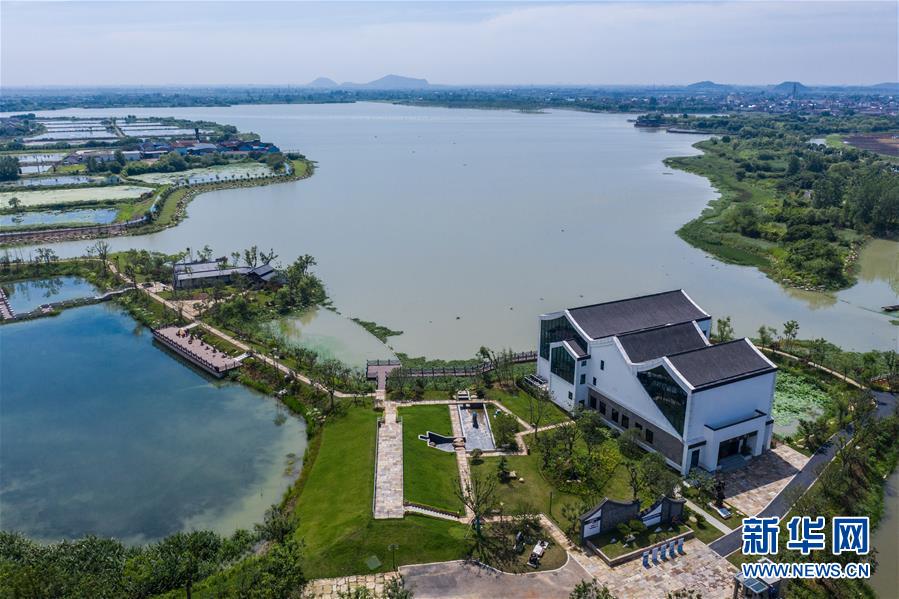 空中俯瞰建成開放的德清水情館(6月17日攝,無人機(jī)照片)。