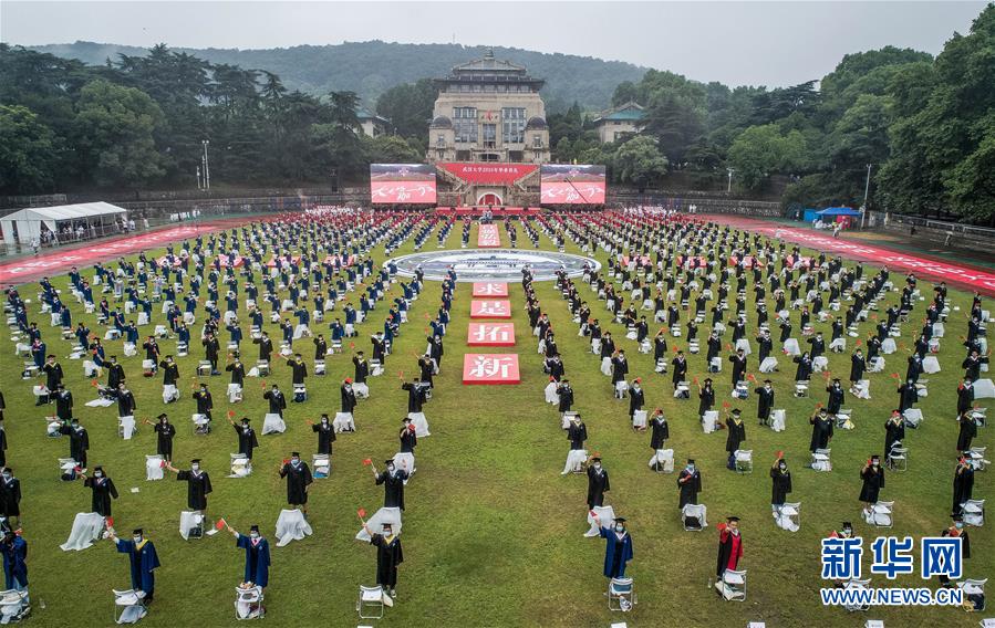 6月20日拍攝的武漢大學(xué)2020年畢業(yè)典禮現(xiàn)場。新華社記者 肖藝九 攝