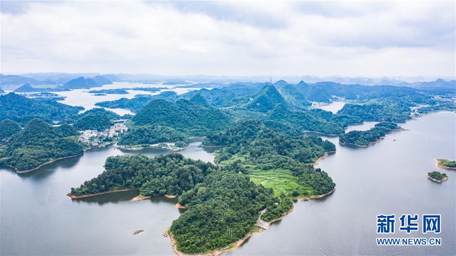 6月21日拍攝的紅楓湖景區(qū)風(fēng)光(無人機照片)。夏至?xí)r節(jié),貴州省清鎮(zhèn)市紅楓湖景區(qū)草木蒼翠,秀麗的湖光山色吸引不少游客前來游玩。新華社記者陶亮攝