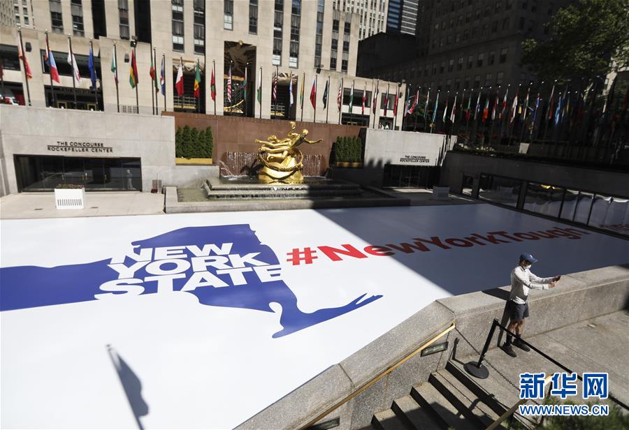 6月22日,在美國(guó)紐約洛克菲勒中心,一名男子在寫(xiě)有“紐約堅(jiān)強(qiáng)”字樣的廣場(chǎng)自拍。美國(guó)約翰斯·霍普金斯大學(xué)22日發(fā)布的新冠疫情最新統(tǒng)計(jì)數(shù)據(jù)顯示,美國(guó)累計(jì)死亡病例超過(guò)12萬(wàn)例。新華社記者王迎攝