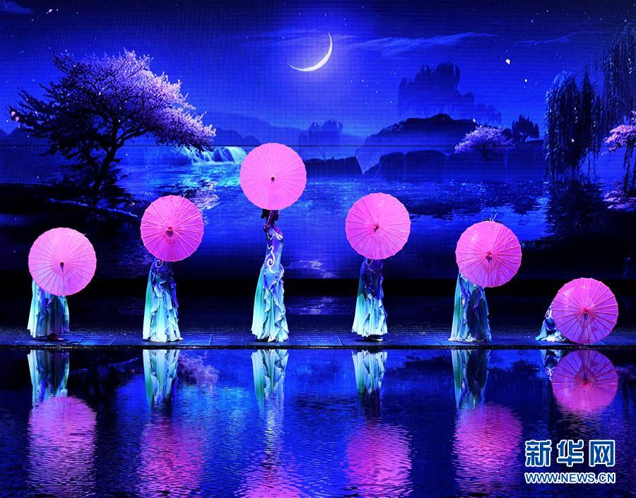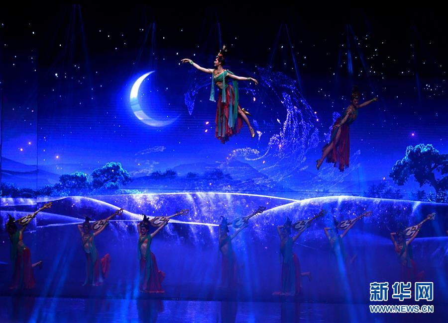 6月22日拍攝的《西安千古情》演出現(xiàn)場(chǎng)。大型舞臺(tái)劇《西安千古情》22日在西安浐灞世博園首演。該劇以一位華裔少女歸國(guó)尋根為故事主線,濃縮展現(xiàn)了古城西安的悠久歷史文化。新華社記者張博文攝