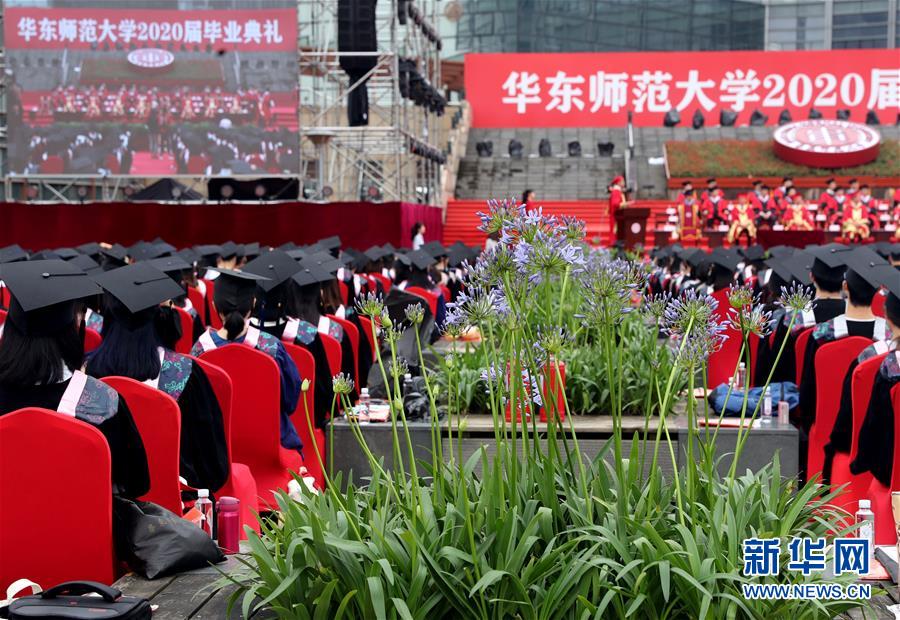 6月23日,在華東師范大學(xué)閔行校區(qū)的畢業(yè)典禮上,優(yōu)秀畢業(yè)生代表接受表彰。當(dāng)日,華東師范大學(xué)舉行2020屆畢業(yè)典禮。由于疫情防控需要,今年的典禮在兩個校區(qū)分別舉辦,并全程在線直播。約7700名華東師范大學(xué)2020屆畢業(yè)生通過現(xiàn)場或“云端”的方式參加畢業(yè)典禮。新華社記者劉穎攝