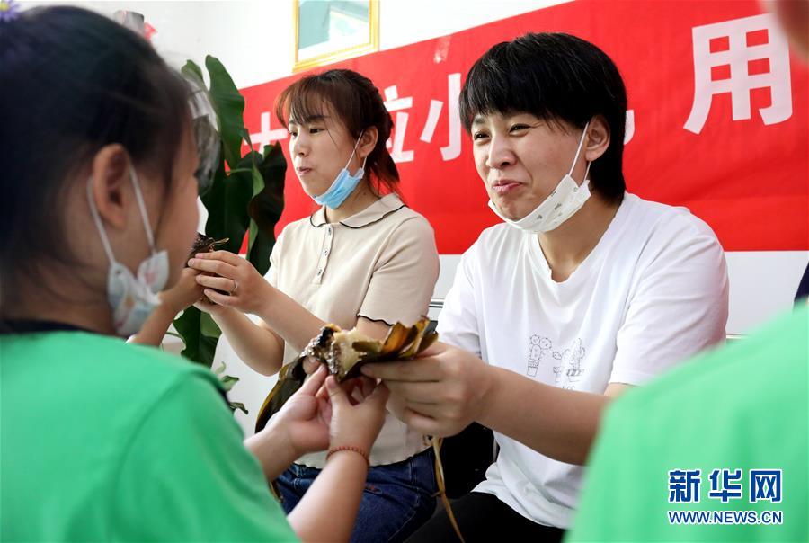 6月24日,在河北省廊坊市安次區(qū)西小街社區(qū)活動中心,孩子們學(xué)習(xí)包粽子。端午節(jié)臨近,各地舉行包粽子、做香包、賽龍舟等豐富多彩的民俗文化活動,迎接傳統(tǒng)佳節(jié)的到來。新華社記者王曉攝