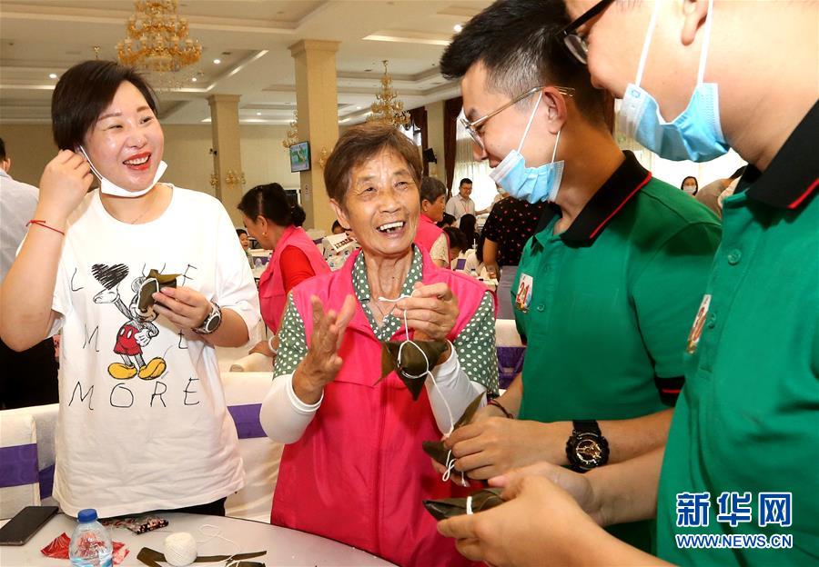 6月24日,上海一家企業(yè)員工和上海新虹橋街道社區(qū)居民一起包粽子迎端午。端午節(jié)臨近,各地舉行包粽子、做香包、賽龍舟等豐富多彩的民俗文化活動,迎接傳統(tǒng)佳節(jié)的到來。新華社記者陳飛攝
