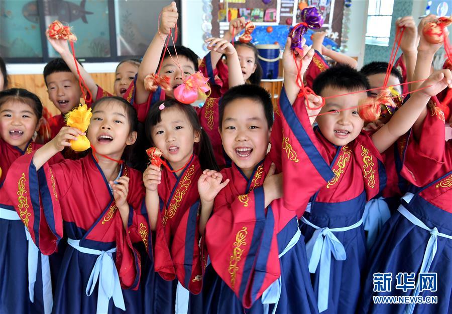 6月24日,西安市航天城第一幼兒園的學(xué)生展示自己制作的香包。端午節(jié)臨近,各地舉行包粽子、做香包、賽龍舟等豐富多彩的民俗文化活動,迎接傳統(tǒng)佳節(jié)的到來。新華社記者劉瀟攝