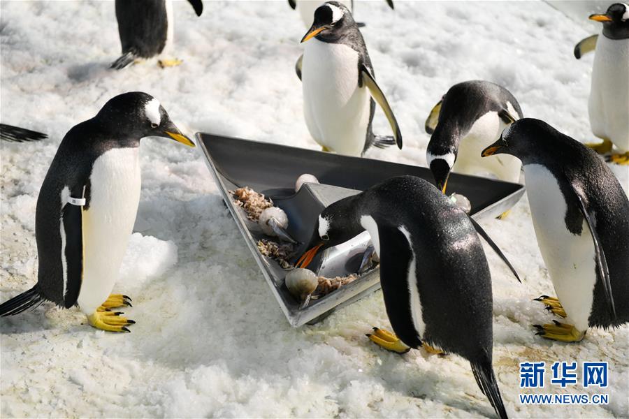 6月24日,哈爾濱極地館的企鵝在品嘗“魚粽”。當(dāng)日,哈爾濱極地館的工作人員特地準(zhǔn)備了“魚粽”“肉粽”,讓生活在這里的極地動物也品嘗一下端午美食。新華社記者王建威攝