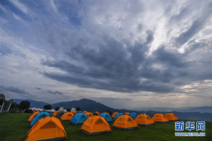 6月27日在杭州市富陽區(qū)常安鎮(zhèn)永安山頂拍攝的帳篷酒店。近期,浙江省杭州市富陽區(qū)場口鎮(zhèn)、常安鎮(zhèn)和湖源鄉(xiāng)組團開啟了一場夏季“綠水青山嘉年華”。這幾個壺源溪流域鄉(xiāng)鎮(zhèn)整合生態(tài)旅游資源,組團開發(fā)山村旅游項目,游客可以參與壺源溪水上游樂、露營永安山頂、特色農產品集市和瓜果節(jié)等特色活動。新華社記者徐昱攝