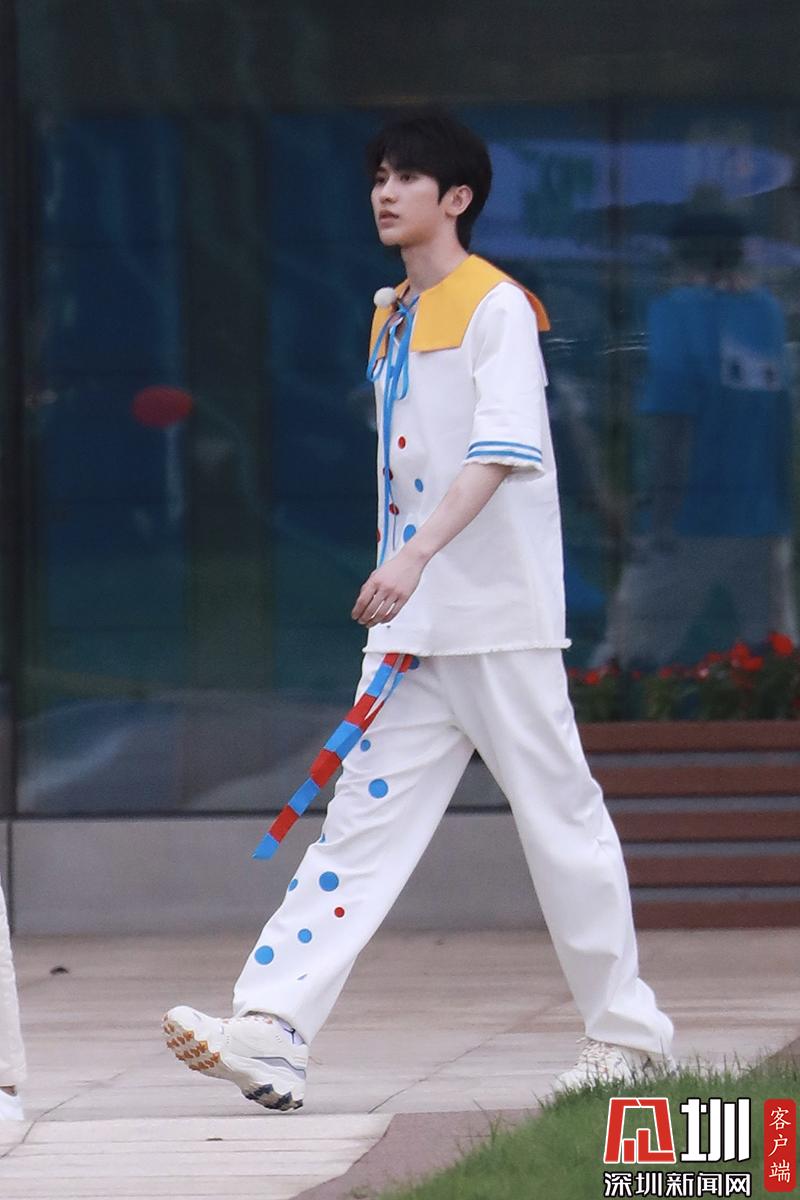 蔡徐坤穿白色波點裝帥氣陽光。