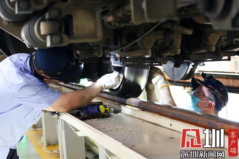 2020年6月29日,該段職工正在對(duì)動(dòng)車組檢修標(biāo)準(zhǔn)化檢修,確保零故障出庫(kù)。