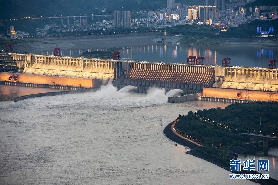 6月29日,三峽樞紐開啟泄洪孔泄洪。受長江中上游強(qiáng)降雨影響,進(jìn)入三峽水庫的水量持續(xù)增多。為騰出一定庫容迎接近期可能到來的洪水,三峽樞紐于6月29日上午開啟兩個泄洪孔,加大下泄流量。這是三峽樞紐今年首次泄洪。28日14時,三峽水庫入庫流量達(dá)4萬立方米/秒,是27日14時的兩倍。為應(yīng)對此輪來水,長江防總要求將三峽水庫下泄流量上調(diào)至日均3.5萬立方米/秒。新華社發(fā)(鄭家裕攝)