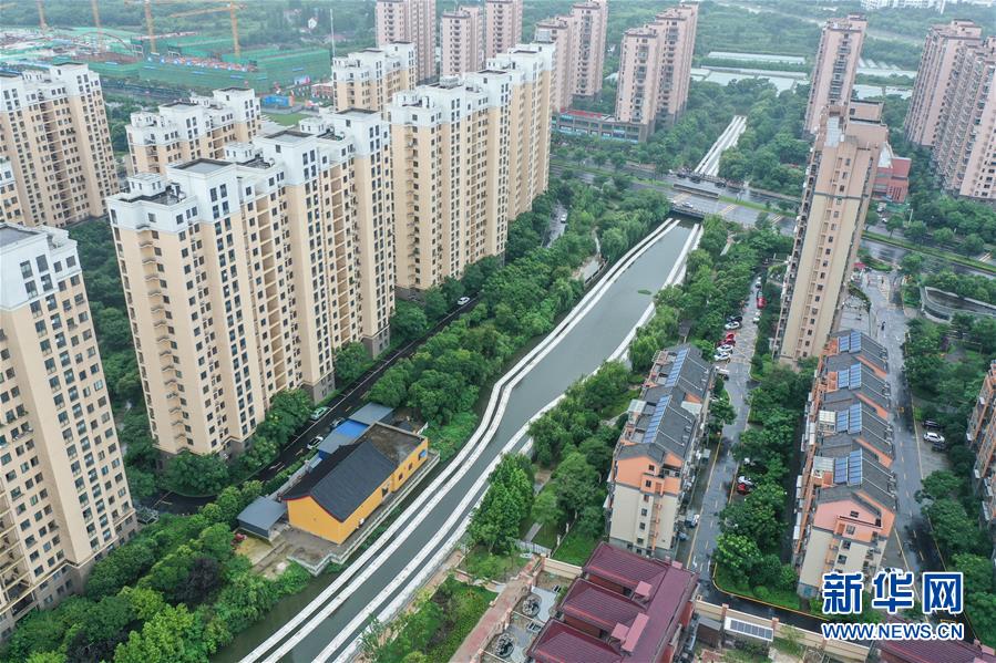 6月29日在吳興區(qū)湖東街道拍攝的“水上稻田”(無人機(jī)照片)。今年以來,浙江湖州吳興區(qū)湖東街道開始在轄區(qū)河道大規(guī)模推廣“水上稻田”新型農(nóng)業(yè)項(xiàng)目,利用浮島進(jìn)行特種水稻種植,既能凈化水體,又能產(chǎn)出生態(tài)稻谷。“水上稻田”預(yù)計(jì)在11月實(shí)現(xiàn)收割。新華社記者翁忻旸攝