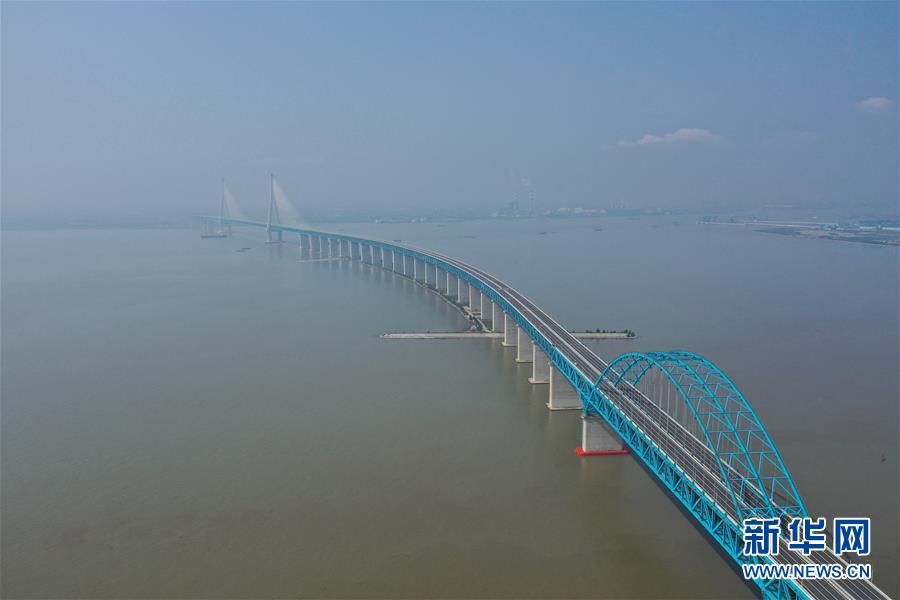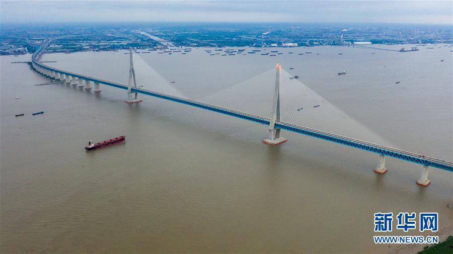 滬蘇通長(zhǎng)江公鐵大橋(6月29日攝,無(wú)人機(jī)照片)。即將于7月1日通車的滬蘇通長(zhǎng)江公鐵大橋北起江蘇南通,南至江蘇張家港,公鐵合建跨江正橋全長(zhǎng)5827米,為集合高速公路、客貨混線鐵路、高速鐵路的“三合一”過江通道,建成通車后將有效促進(jìn)長(zhǎng)三角城市群跨江融合、協(xié)同發(fā)展。新華社記者李博攝