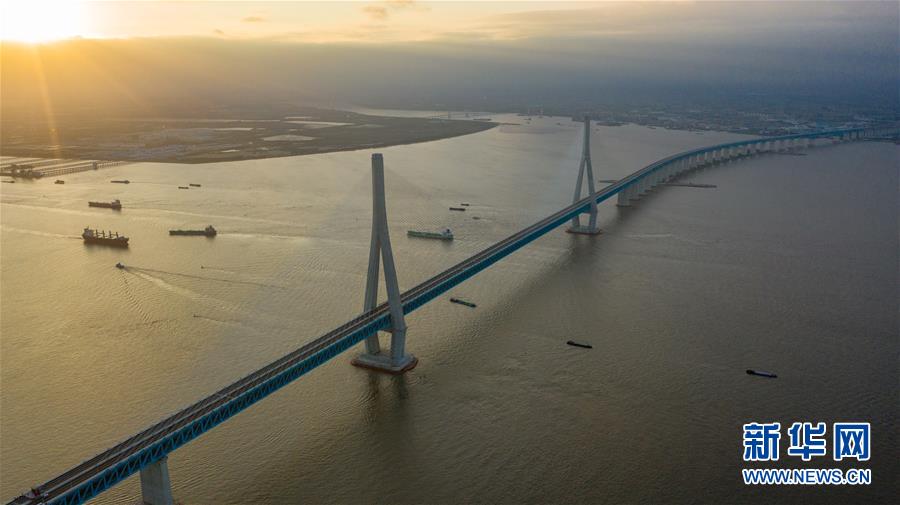 滬蘇通長(zhǎng)江公鐵大橋(6月30日攝,無(wú)人機(jī)照片)。即將于7月1日通車的滬蘇通長(zhǎng)江公鐵大橋北起江蘇南通,南至江蘇張家港,公鐵合建跨江正橋全長(zhǎng)5827米,為集合高速公路、客貨混線鐵路、高速鐵路的“三合一”過江通道,建成通車后將有效促進(jìn)長(zhǎng)三角城市群跨江融合、協(xié)同發(fā)展。新華社記者季春鵬攝