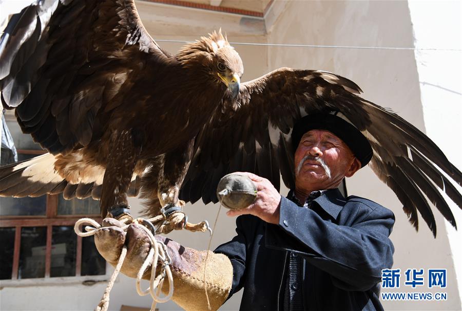 6月29日,庫爾馬西·胡特曼撫摸他的獵鷹。馴鷹習(xí)俗是柯爾克孜族長期以來形成的一種生產(chǎn)生活習(xí)俗,新疆克孜勒蘇柯爾克孜自治州阿合奇縣牙朗奇村的庫爾馬西·胡特曼今年69歲,是國家級(jí)非物質(zhì)文化遺產(chǎn)代表性項(xiàng)目柯爾克孜族馴鷹習(xí)俗的代表性傳承人。庫爾馬西的家族世代馴鷹。從小與鷹相處,庫爾馬西成為名副其實(shí)的“鷹語者”。要將兇猛的野鷹訓(xùn)練成聽從指揮的獵鷹絕非易事,需要馴鷹人投入大量心血,精心喂養(yǎng)。一代代馴鷹人之間口耳相傳,形成了一套涵蓋取鷹、熬鷹、馴鷹、放鷹等方面的絕學(xué)?!苞検怯徐`性的動(dòng)物,懂得感恩,會(huì)通過抖動(dòng)羽毛來表示喜悅,表示對(duì)你的愛?!睅鞝栺R西說,“鷹也會(huì)因?yàn)槲业目洫?jiǎng)給我信號(hào),通過叫聲、身體語言告訴我,它理解了我的話。”在柯爾克孜族的馴鷹傳統(tǒng)里,獵鷹在為主人“服役”一到五年后,將重返天空,獲得自由。隨著野生動(dòng)物保護(hù)相關(guān)法規(guī)的出臺(tái),當(dāng)?shù)匾呀柜Z鷹人取鷹捕鷹,目前已馴養(yǎng)的獵鷹放飛后恐將無以為繼?;蛟S,庫爾馬西這一代人,將成為最后的“鷹語者”。新華社記者宋彥樺攝