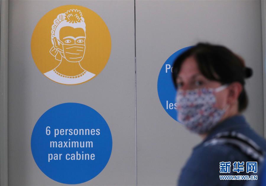 7月1日,法國巴黎蓬皮杜藝術中心的電梯上貼著“請佩戴口罩”和“最多6人乘梯”的標識。因新冠疫情關閉的法國巴黎蓬皮杜藝術中心于7月1日重新開門迎客。目前,中心只開放6層的臨時展區(qū)和4、5層的現(xiàn)代藝術常設展區(qū)。參觀者需提前網(wǎng)上預約參觀時段,11歲以上參觀者須佩戴口罩,參觀過程中保持安全距離。新華社記者高靜攝