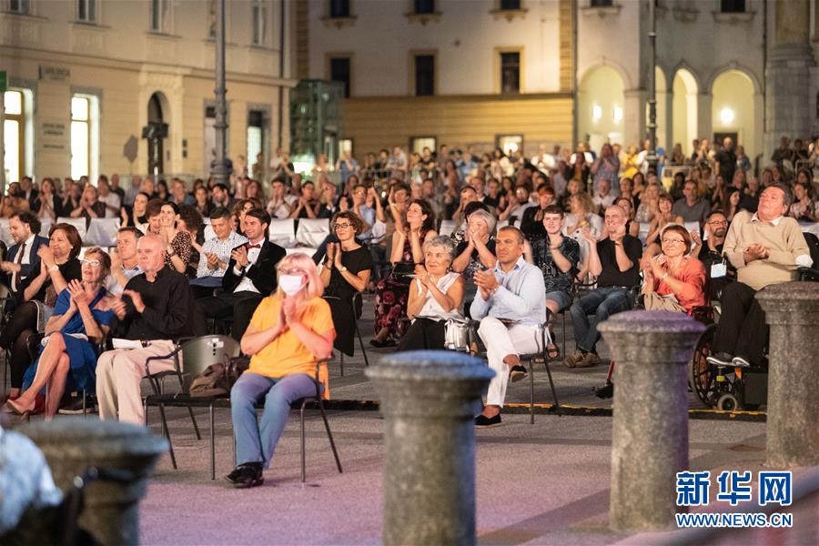 7月1日,觀眾在斯洛文尼亞首都盧布爾雅那觀看藝術(shù)節(jié)開幕式演出。當(dāng)日,第68屆盧布爾雅那藝術(shù)節(jié)拉開帷幕。新華社記者彭立軍攝