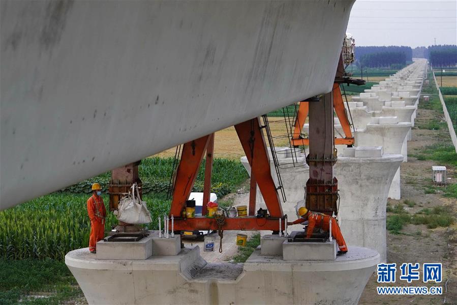 7月2日,工人在京唐城際鐵路河北省唐山市豐潤段建設工地施工。近日,京(北京)唐(唐山)城際鐵路河北省唐山段工程建設按照節(jié)點要求穩(wěn)步推進。據(jù)介紹,京唐城際鐵路是京津冀地區(qū)軌道交通網絡的重要組成部分,起點位于北京市通州區(qū)的城市副中心站,途經河北省廊坊市、天津市寶坻區(qū),終點位于河北省唐山市唐山站,線路長約148.74千米。新華社記者楊世堯攝