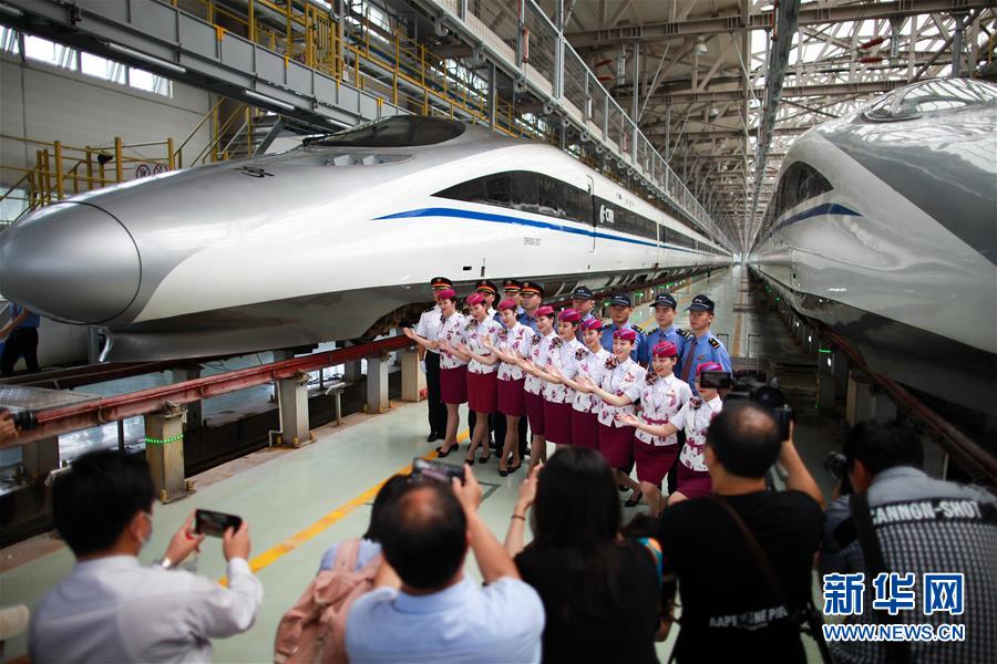 7月3日,新聞媒體在貴陽(yáng)采訪拍攝擔(dān)任首發(fā)列車(chē)值乘工作的班組人員。 新華社記者 劉續(xù) 攝