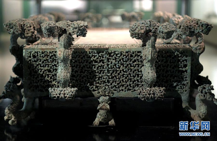 這是河南博物院展廳里的云紋銅禁(2019年11月18日攝)。新華社記者李安攝