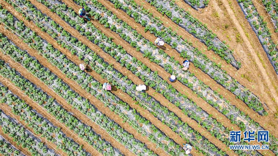 7月6日,貴州省六枝特區(qū)郎岱鎮(zhèn)青龍村村民在田地里勞作(無人機(jī)照片)。當(dāng)日是小暑節(jié)氣,貴州省各地農(nóng)民不誤農(nóng)時(shí),忙碌在田間地頭。新華社記者陶亮攝