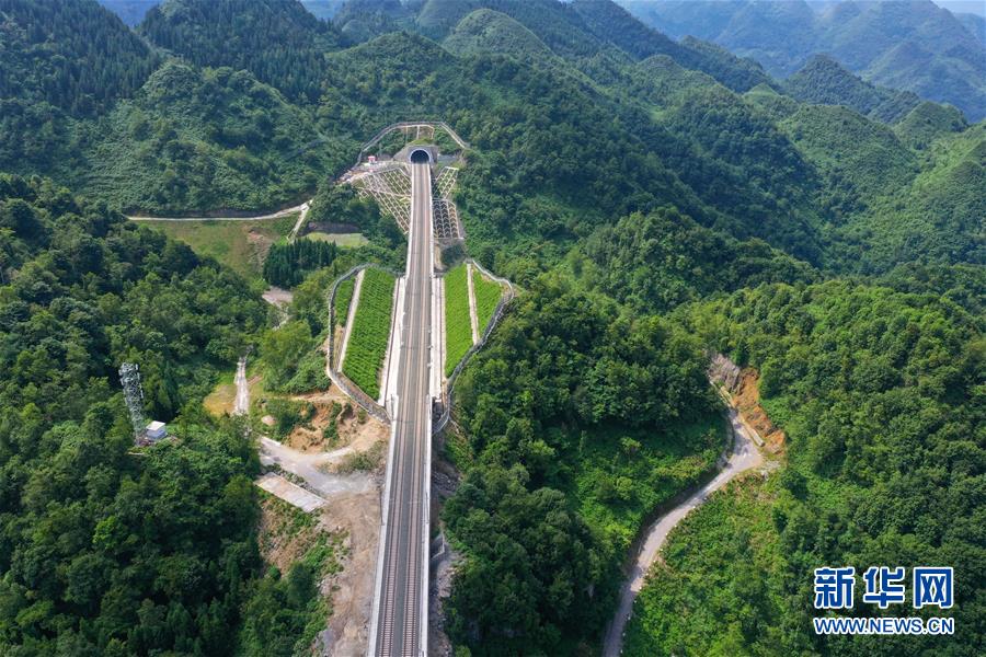 7月6日拍攝的安六鐵路彭家沖一號大橋附近的景觀(無人機照片)。當(dāng)日,新建貴州安六鐵路(安順至六盤水)聯(lián)調(diào)聯(lián)試工作進(jìn)入收尾階段,開通前的各項準(zhǔn)備工作已基本就緒。安六鐵路線路全長約125公里,設(shè)計時速250公里,為國家I級雙線客運專線。建成投用后,貴陽至六盤水的鐵路旅行時間可從現(xiàn)在的3.5小時縮短為1小時左右,貴州省六盤水市將全面接入全國高鐵網(wǎng)。新華社記者劉續(xù)攝