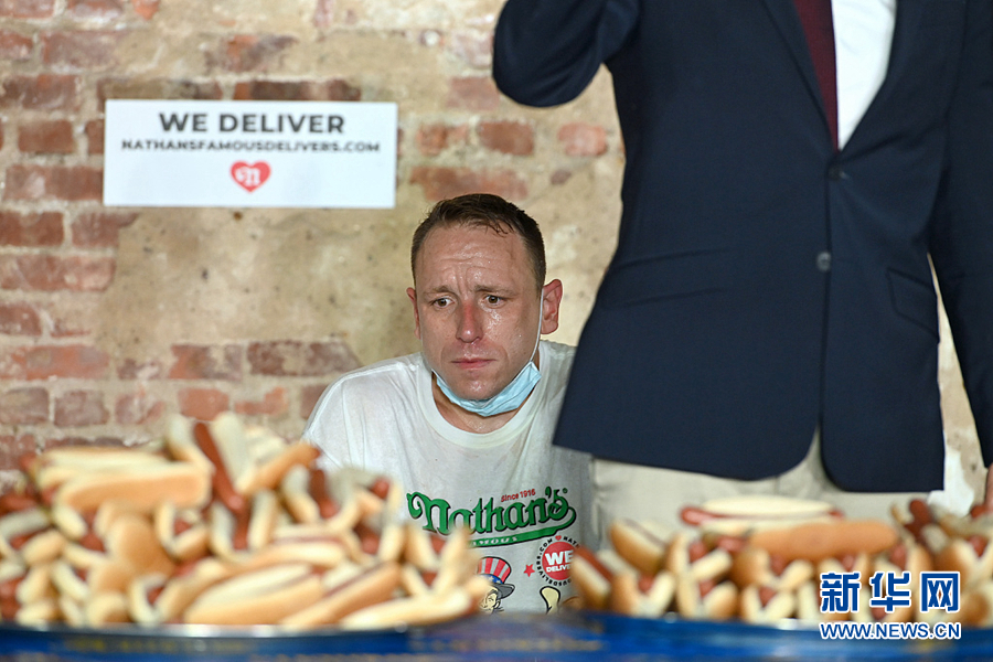 7月4日,美國紐約布魯克林舉行一年一度的國際吃熱狗比賽,喬伊·切斯納特以吃75個熱狗的成績贏得男子賽區(qū)冠軍,創(chuàng)下了新的世界紀(jì)錄。(圖片來源:視覺中國)