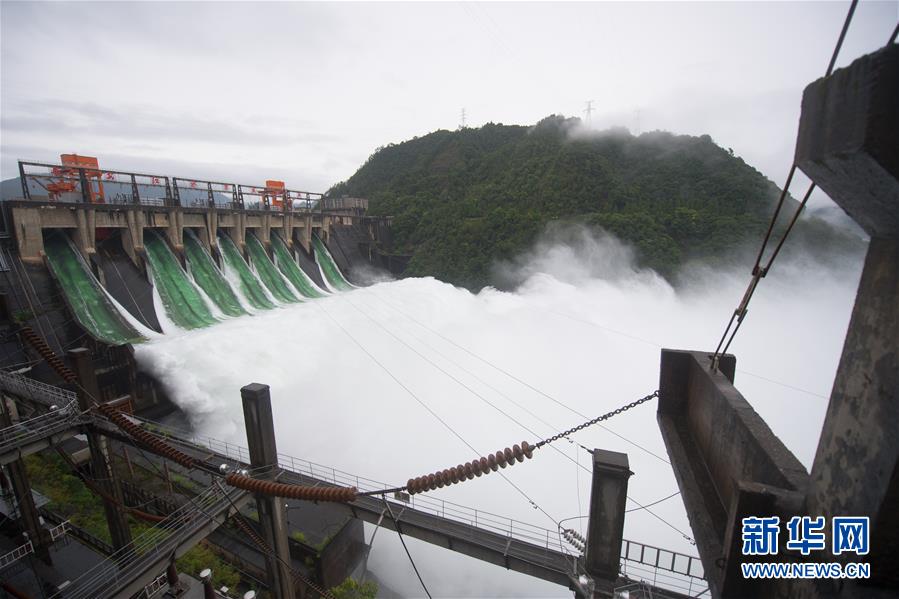 7月7日下午開啟7孔泄洪的新安江水庫。受持續(xù)降水影響,浙江新安江水庫水位持續(xù)快速上升。繼當日10時開啟3孔、12時開啟5孔泄洪后,新安江水庫于16時增加到7孔泄洪。新安江水庫是華東地區(qū)最大的水庫,在錢塘江流域的防洪度汛中起到關(guān)鍵作用。新華社記者翁忻旸攝