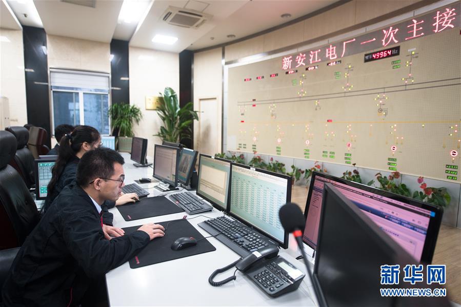 7月7日,新安江電廠工作人員在壩體內(nèi)部中央控制室工作。受持續(xù)降水影響,浙江新安江水庫水位持續(xù)快速上升。繼當日10時開啟3孔、12時開啟5孔泄洪后,新安江水庫于16時增加到7孔泄洪。新安江水庫是華東地區(qū)最大的水庫,在錢塘江流域的防洪度汛中起到關(guān)鍵作用。新華社記者翁忻旸攝