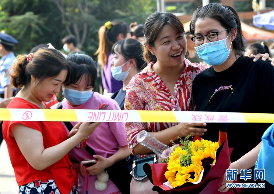 7月8日,吉林省長(zhǎng)春希望高中考點(diǎn)的考生接過(guò)家長(zhǎng)手中的花束。當(dāng)日,全國(guó)部分地區(qū)2020年高考結(jié)束。新華社記者張楠攝
