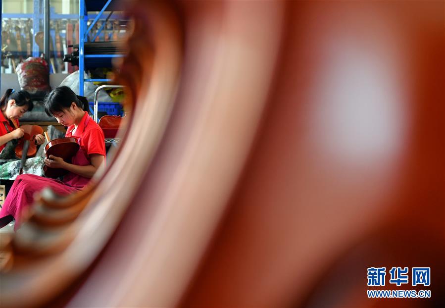 工人在河南駐馬店市確山縣提琴產(chǎn)業(yè)園提琴生產(chǎn)車間工作(7月3日攝)。新華社記者李嘉南攝