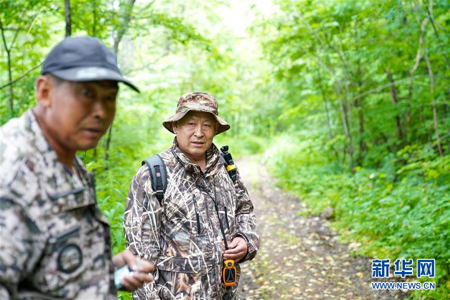 董紅雨在迎春林業(yè)局有限公司施業(yè)區(qū)內(nèi)進行野生東北虎信息搜集和巡護工作(7月8日攝)。新華社記者馬曉成攝
